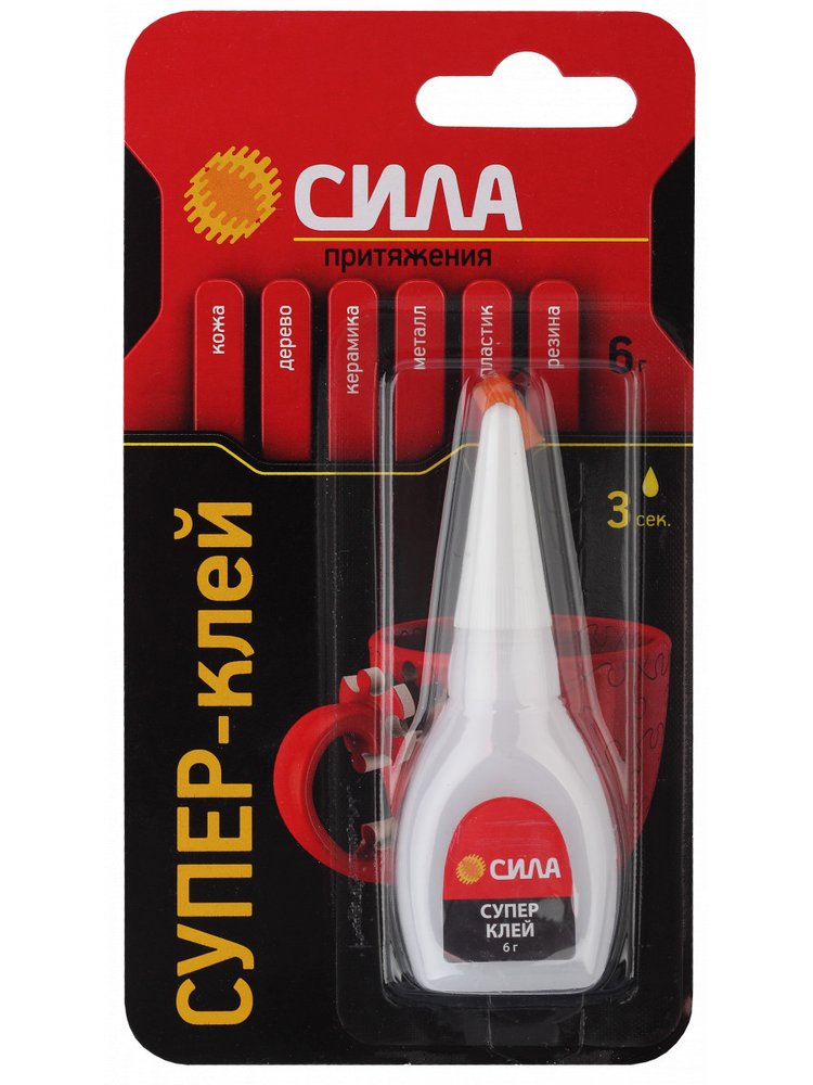 Супер-клей СИЛА, идеально подходит для быстрого и эффективного ремонта различных предметов мебели, интерьера и т.д. Накрепко схватывает дерево, резину, стекло, фарфор и пластик, при этом супер клеи экономично расходуются и высыхают за несколько секунд. * 100% цианоакрилат - высокая концентрация клеящих ингредиентов, обеспечивает крепкое, мгновенное соединение частей различных предметов. * Удобный само вскрывающийся тюбик - при накручивания колпачка, обеспечивает быстрое и аккуратное использование. * Предусмотрена перфорация "ёлочка" под тюбиком для извлечения его быстро и без усилий. Суперклей быстро и прочн