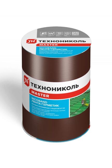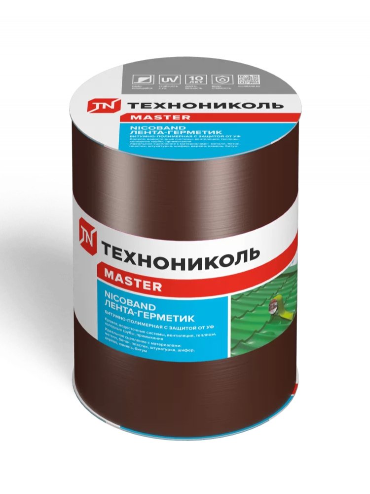 Самоклеющаяся лента марки NICOBAND предназначена для герметизации швов и трещин. Материал представляет собой трёхслойное изделие. Верхний слой – цветное покрытие с УФ-защитой. Средний представляет собой самоклеющийся герметизирующий материал. Нижняя часть – защитная пленка, которая легко отсоединяется. Лента Никобенд нашла широкое применение: материал используют для ремонта кровли, изоляции примыканий и водосточных систем. Изделие отличается хорошим сцеплением с различными материалами, включая древесину, стекло, пластик и бетон. Надежная герметизация кровли и стыков, устойчива к погоде и УФ, простое применение на любых материалах, длина 3 м, ширина 15 см, коричневый.