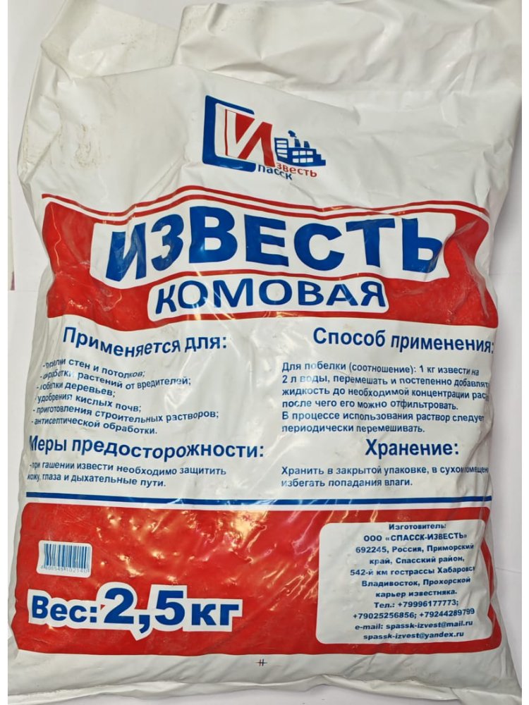 Известь комовая 2,5кг в Лесозаводск