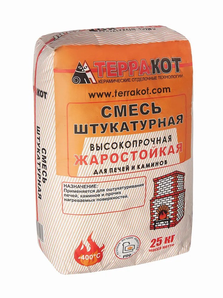 Смесь жаростойкая штукатурная высокопрочная 25кг. ТЕРРАКОТ