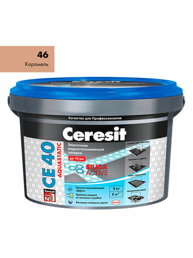 Надёжная защита и безупречная эстетика — затирка Ceresit CE40 аквастатик (карамель 46, 2 кг) идеально подходит для межплиточных швов в помещениях с повышенной влажностью: ванных комнатах, кухнях, санузлах, бассейнах и на террасах. Благодаря технологии Aquastatic, затирка обладает высокой водоотталкивающей способностью и устойчивостью к образованию плесени и грибка.