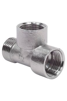 Тройник 1/2" никелированный: надёжная латунь, НР-ВР-НР, стойкость к коррозии, давление до 16 бар. Для воды и отопления. Лёгкий монтаж.