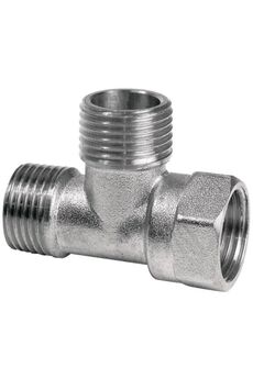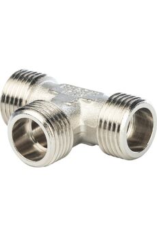 Прочный никелированный латунный тройник 1/2" для воды и отопления, устойчив к коррозии, легко монтируется, обеспечивает герметичность соединений.