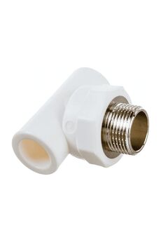 Полипропиленовый тройник с латунной наружной резьбой, выдерживает до 25 бар и температуру до 95°C. Для водопроводов и отопления.