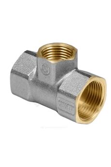 Латунный тройник Ду 15 ВР никелированный: прочный, коррозионностойкий, выдерживает давление до 16 бар, для воды и отопления, прост в монтаже и надёжен в эксплуатации.