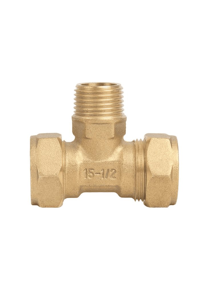 Надёжное решение для ваших сантехнических проектов! Тройник предназначен для разветвления трубопроводов с сечением Ø15 мм с переходом на резьбу 1/2" (наружная). Изготовлен из высококачественной латуни, что гарантирует длительный срок службы, устойчивость к коррозии и безопасную эксплуатацию с питьевой водой и отопительными системами.
