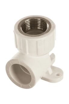 Прочный полипропиленовый уголок 25х3/4 с креплением, латунная вставка, для стойких к давлению трубопроводов отопления и водоснабжения.