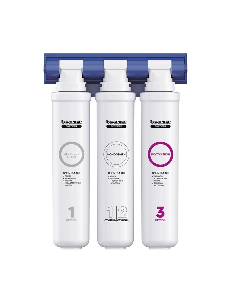 - Три ступени фильтрации: надежная очистка механических, химических и органических загрязнений