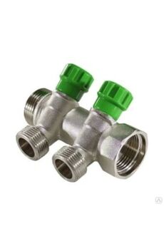 Латунный коллектор с двумя кранами, Ду 20, надежен, устойчив к коррозии, просто монтируется, идеально для систем отопления и водоснабжения.