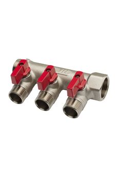 Латунный коллектор для воды 20x20x15*3 с кранами: надёжность, долговечность, простота монтажа, устойчив к коррозии, подходит для отопления и водоснабжения.
